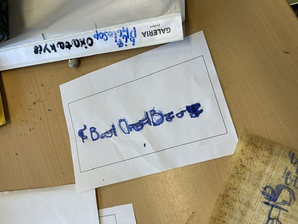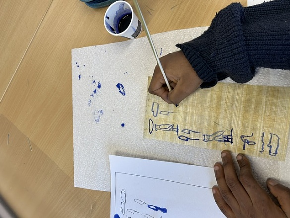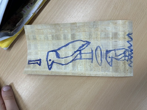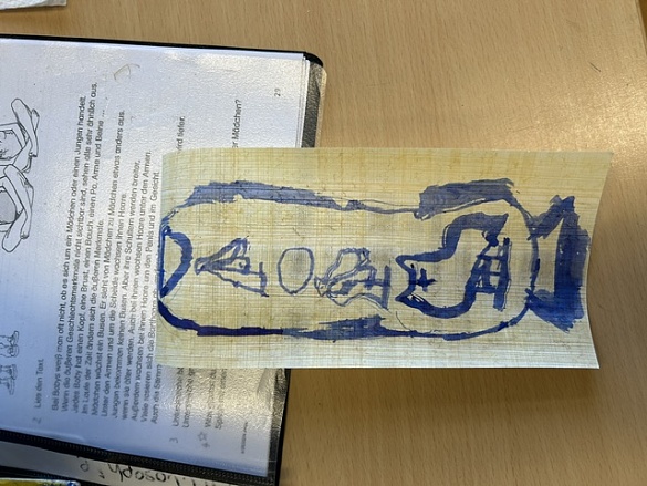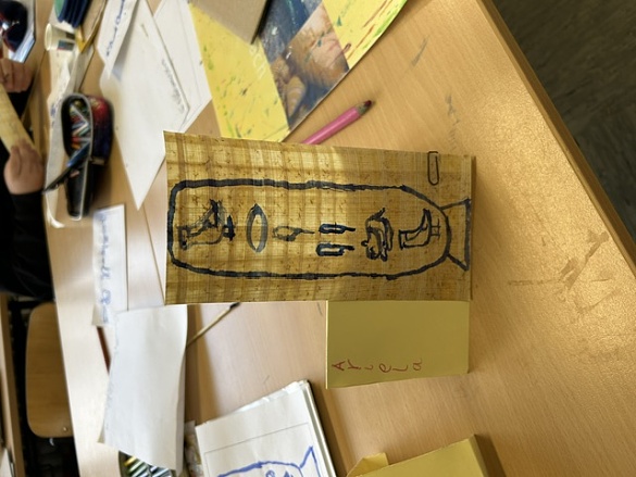 Zum Schluss durften wir auf echtem Papyrus arbeiten. Dort haben wir unsere Namen in Hieroglyphen aufgeschrieben – genau wie es die alten Ägypter getan hätten!