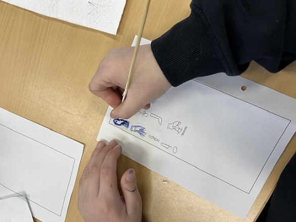 Wir entdeckten, dass die Menschen damals in Hieroglyphen schrieben. Das wollten wir selbst ausprobieren!