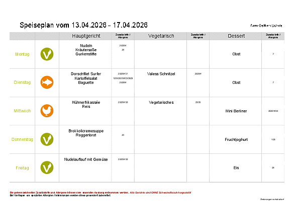 Unser Speiseplan vom 13.04.2026 - 17.04.2026